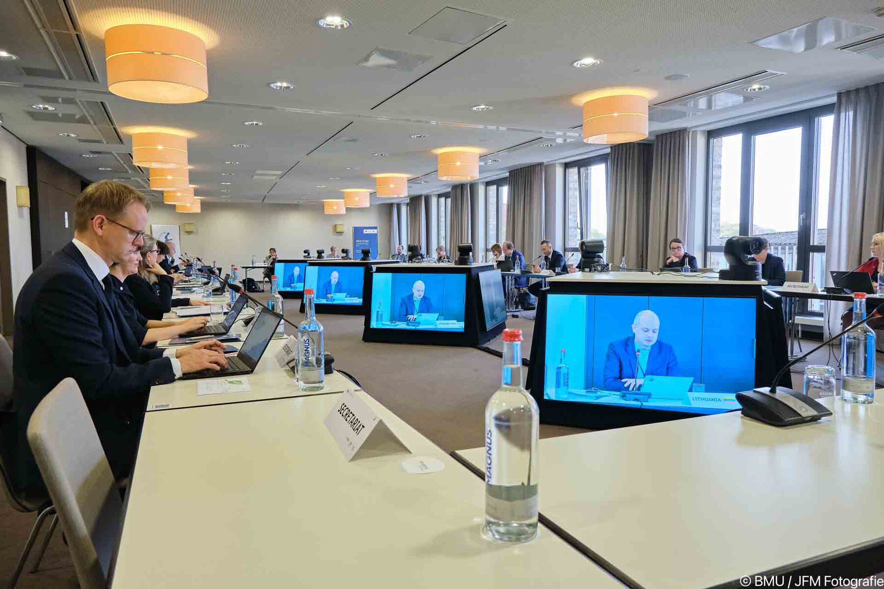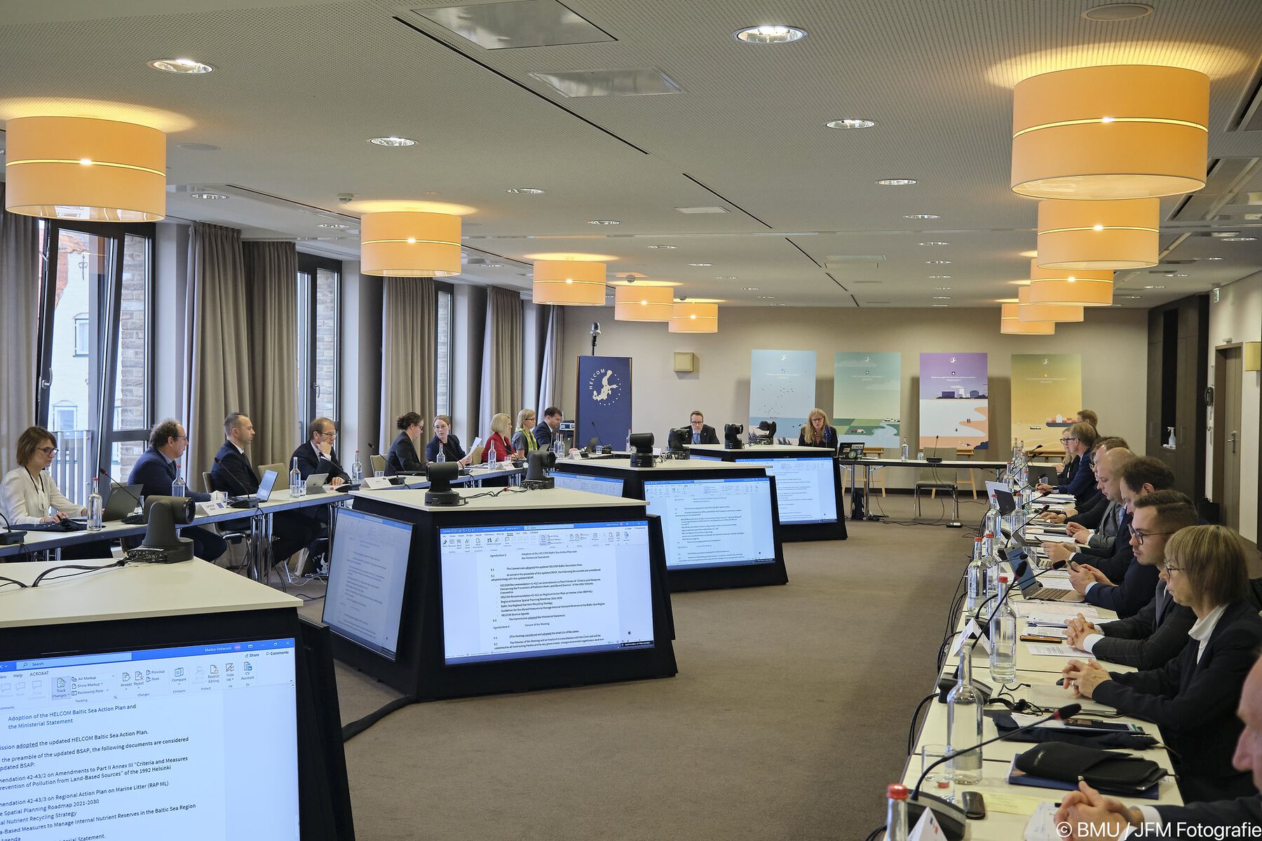 Vertreter der Helsinki-Kommission zum Schutz der Meeresumwelt des Ostseeraums (HELCOM) trafen sich 2021 in Lübeck zum aller drei Jahre stattfindenden HELCOM-Ministerial-Meeting. Für die höchste HELCOM-Entscheidungsebene galt es, sowohl die Konferenz der Delegationsleiter als auch das anschließende HELCOM-Ministerial-Meeting hybrid umzusetzen.