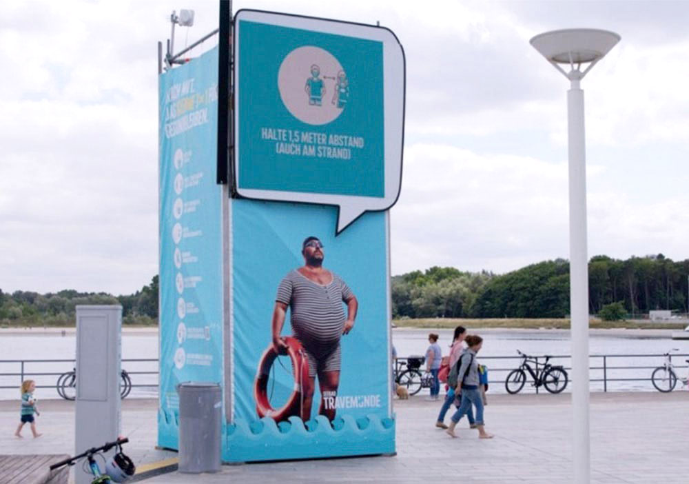 Unsere LED-Türme sind flexibel einsetzbar und übernehmen zahlreiche Funktionen. Sie sind Werbemedium, Personenleit- und Informationssystem, Ausschilderung oder Wegweiser. Grundlage bildet ein quadratischer Gerüstbau (2 x 2 m) mit einer Höhe von fünf Metern. Die integrierten LED-Wände haben einen Pixelpitch von 4,6 mm. Die umlaufenden Banner sind individuell gestaltbar.