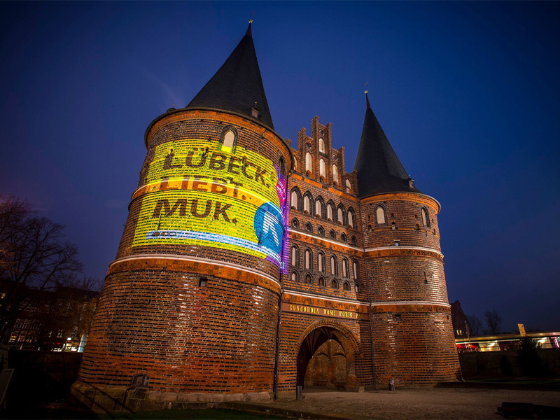 Wenn die Botschaft so groß und strahlend ist, dass sie auf keine Leinwand mehr passt, dann bringen wir sie mit unseren Hochleistungsprojektoren auf Gebäudefassaden. Klar, dass wir auch die Programmierung Ihrer Inhalte übernehmen.